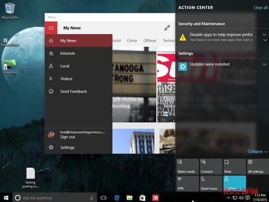 Windows 10推出了新的Action Center(操作中心)從而解決這個(gè)問(wèn)題,該中心位于任務(wù)欄的右手邊。錯(cuò)過(guò)的通知會(huì)一直留在那里,直到用戶將其撤銷。在操作中心,用戶還可以找到一些快捷鍵,從而迅速管理WiFi、藍(lán)牙,進(jìn)入平板電腦模式等。