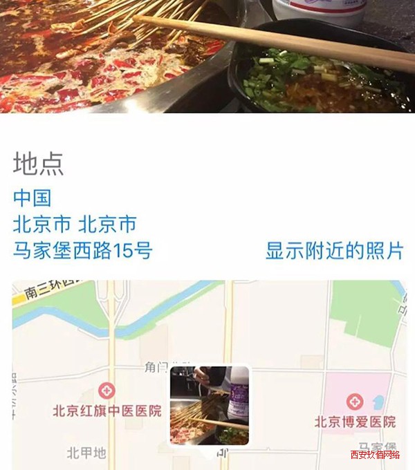測試者給朋友發了一張吃火鍋的照片,他的朋友僅憑微信聊天中的一張“原圖”,就完全找到了火鍋店的具體位置。看起來高智商的背后,其實是智能手機里的照片定位系統的“功勞”。特別是照片原圖,分分鐘暴露你的位置信息。