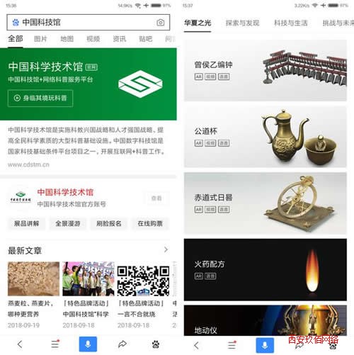 據介紹,雙方的合作主要包含三個方面的內容。首先,雙方將合作打造一個科技教育服務公益平臺,該平臺主要落地在百度搜索以及百度百科兩款產品中。現在,在百度App里搜索“中國科技館”,就可以看到在搜索結果頁置頂的中國科學技術館的官方熊掌號中提供了“展品講解”、“全景漫游”、“刷臉報名”以及“在線購票”等服務內容。這其中的“展品講解”功能相當于提供了一個生動的可供用戶在線游覽的科技館,借助AR的技術把很多科普知識直觀地呈現出來。