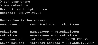 關于nslookup的詳細說明,請看:Nslookup命令詳解