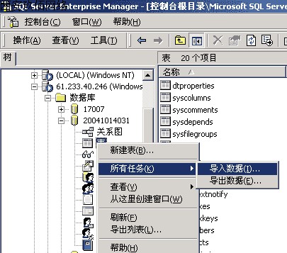 12、在表上點擊右鍵,選擇所有任務,選擇導入數據,如下圖所示: