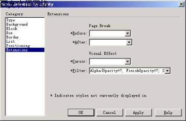 也許你已經(jīng)注意到了Alpha(Opacity=?, FinishOpacity=?, Style=?, StartX=?, StartY=?, FinishX=?, FinishY=?)這一段代碼,里面有很多問號,這需要我們?nèi)ビ脜?shù)來代替它,不要看到代碼就怕,無非就幾個意思,了解后不就那么一回事嘛。 要得到好的效果,那么這些用來代替問號的參數(shù)可不能馬虎,先看看每一樣參數(shù)的意思我們再繼續(xù)。