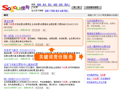 關鍵詞競價服務,是一種網絡定向信息搜索服務,通過關鍵詞和智能搜索技術,讓信息出現在Sogou和合作伙伴的網站上。