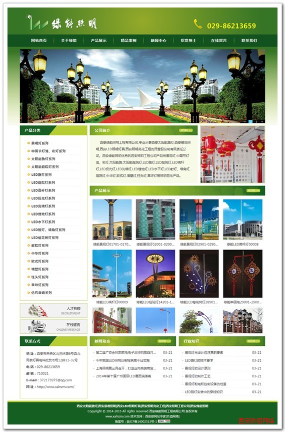 西安綠能照明工程有限公司 http://www.xalnzm.com ,專業從事太陽能路燈、景觀燈、庭院燈、LED照明燈具等產品銷售及照明亮化工程的民營股份制有限責任公司。公司主營產品有景觀燈,中國節燈籠、彩燈,太陽能路,太陽能庭院燈,LED路燈,LED庭院燈,LED高桿燈,LED投光燈,LED洗墻燈,LED埋地燈,LED水下燈,LED射燈、墻角燈,庭院燈,中華燈,歐式燈,墻壁燈,柱頭燈,草坪燈等照明亮化產品。